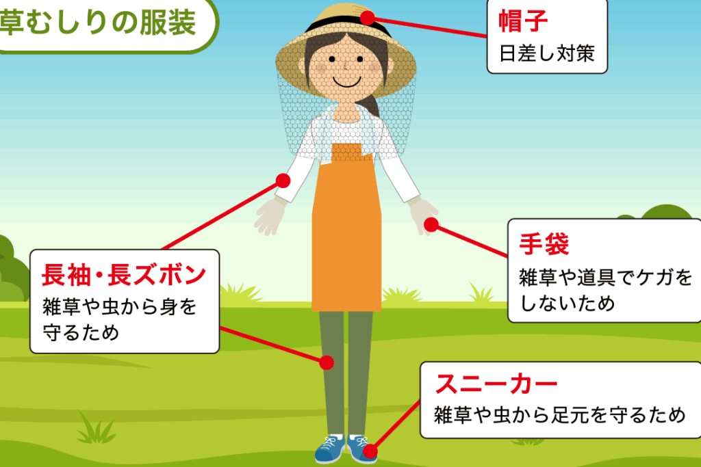 道具を使うことで、大規模な草むしりが効率よく行えます。次のステップで実施してみましょう。