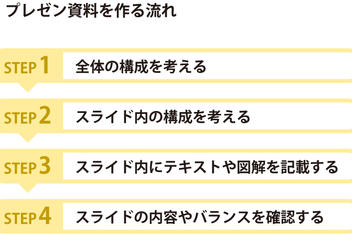 スライド作成には具体的な手順があります。以下のステップを順に実行することで、効果的なスライドを作成できます。