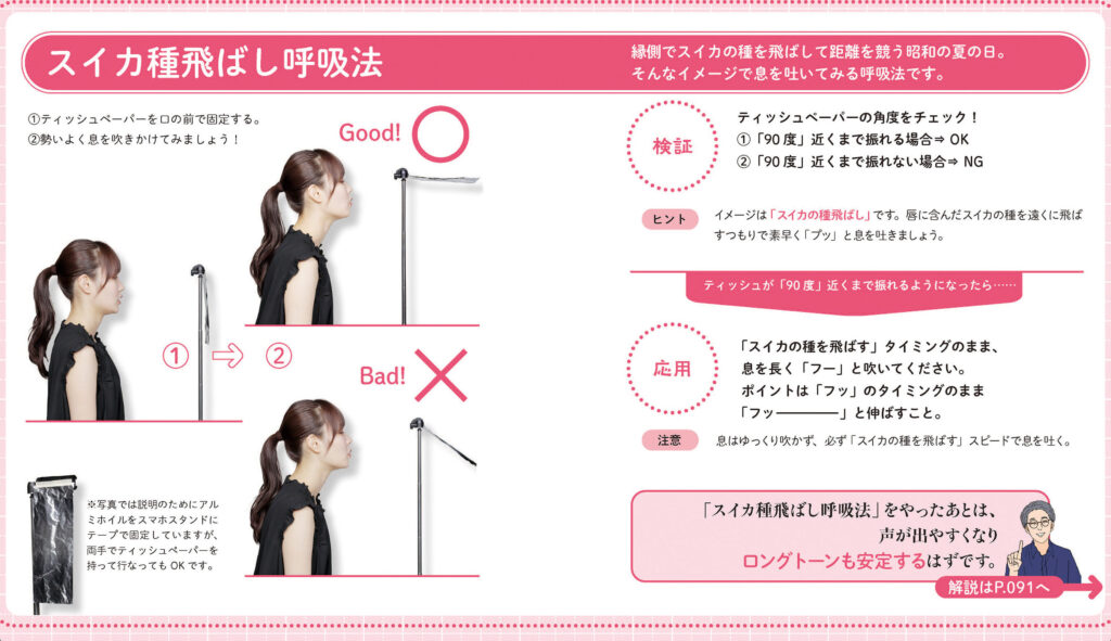 - 毎日の練習をする。毎日少しずつでも歌うことで、声帯が鍛えられる。