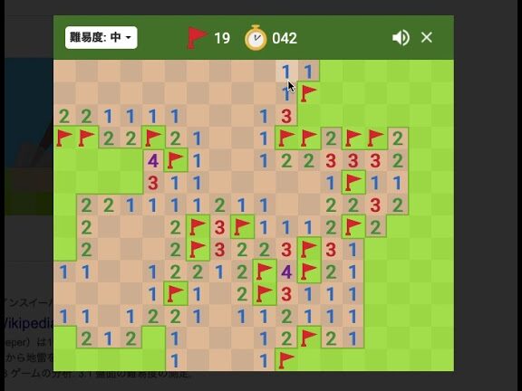 数字をもとに、地雷の位置を推測し新たなマスをクリックする。