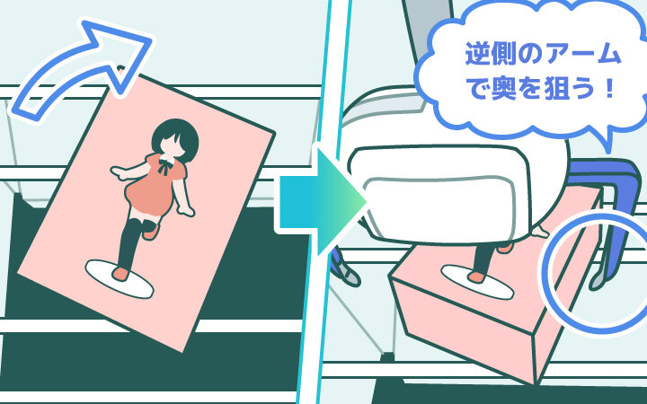 - クレーンのアームの位置を調整する。最も効果的な位置で操作します。