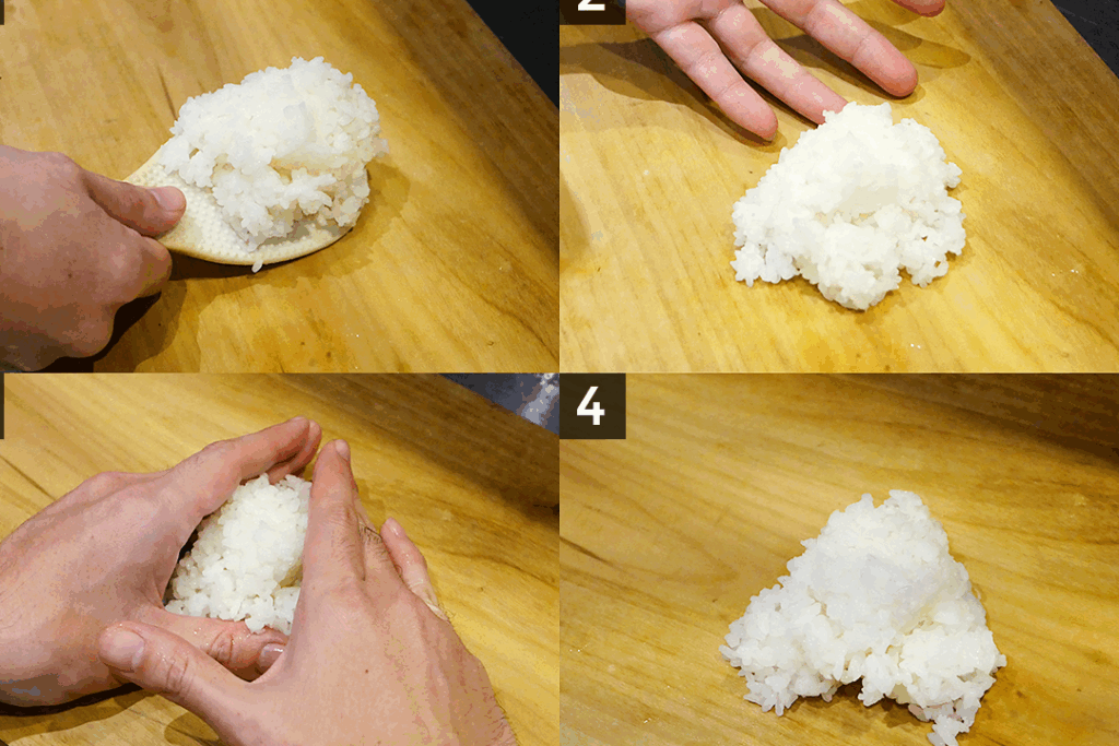 - 形を整える: 両手で優しく押さえ、おにぎりを形作ります。