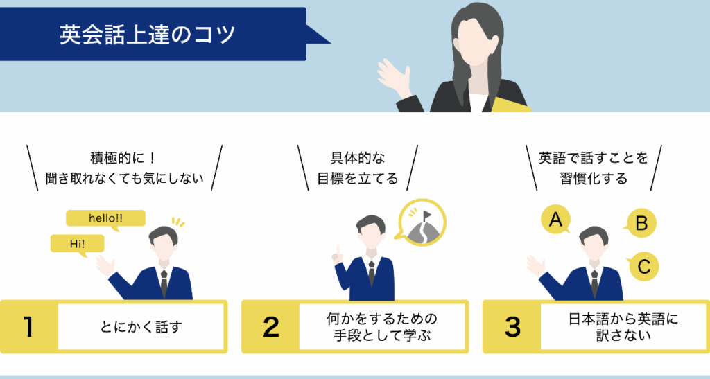 英会話を上達させるための効果的な学習方法を具体的に説明します。取り入れることで、英会話のスキルを確実に高められます。