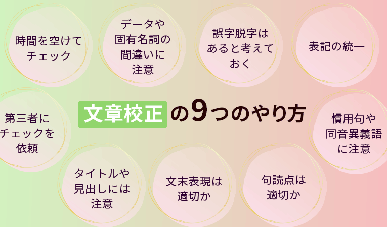 - 目的を明確にする。 文章の目的を理解することで、校正の焦点を絞ります。