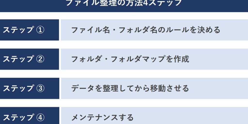 - 物理的書類の整理を行う。アナログ書類も適切に保管し、すぐにアクセスできるようにします。
