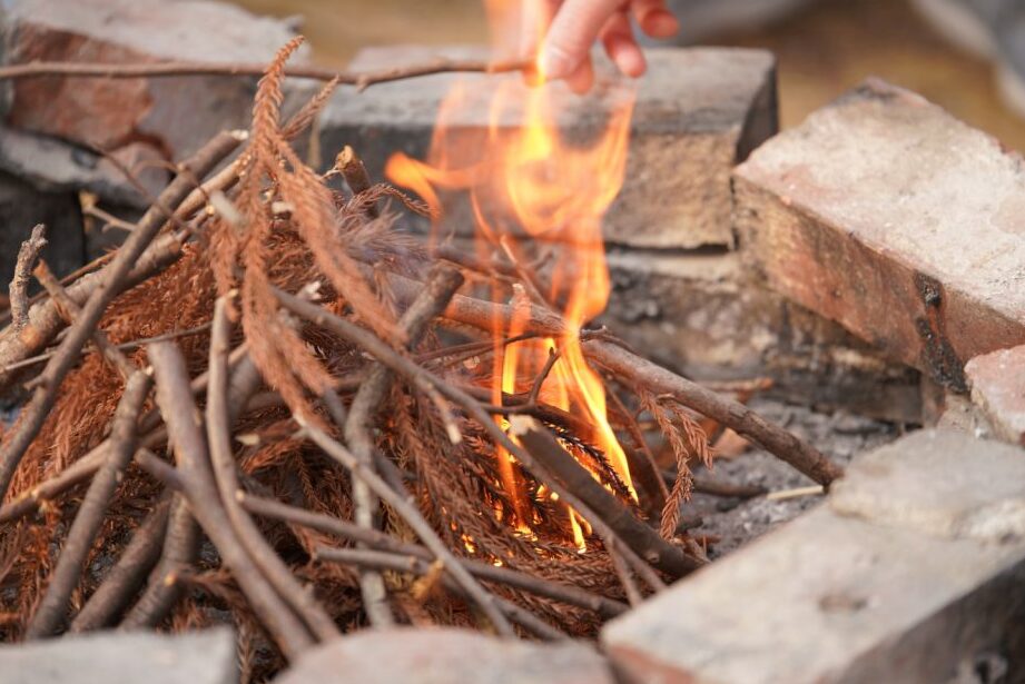 - 自然素材を優先する。 乾燥した木や枝を使用し、化学燃料の使用を避けることで環境への負担を軽減する。