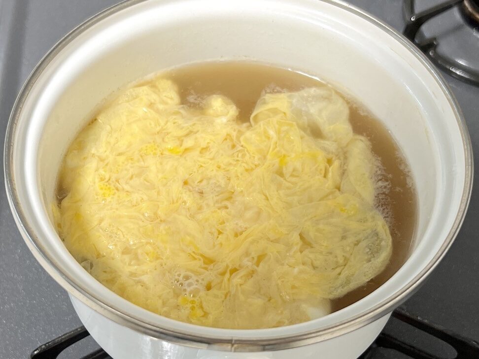 - 卵液を流し込む。ふわっとした卵液をフライパンに入れ、表面が固まるまで加熱します。焦がさないように注意が必要です。