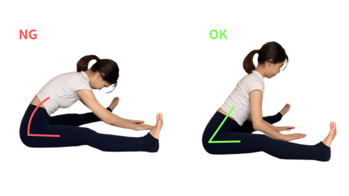 - 体を前に倒し、両脚を広げることで適切な筋肉を伸ばします。