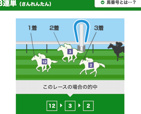 - 単勝: 1着の馬を当てる馬券です。シンプルで初心者にもおすすめです。