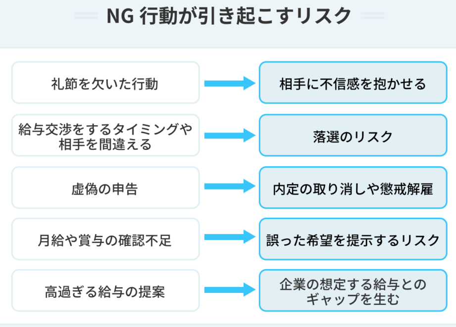 - 柔軟性を持つ: 交渉がうまくいかない場合でも、他の条件(福利厚生や昇進機会)を交渉の材料とする。