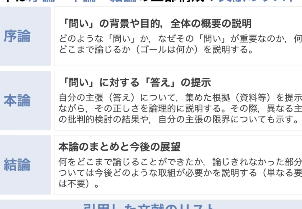 - 証拠の信頼性を確認する。引用した文献やデータの信頼性を検証し、適切に引用されていることを確認します。