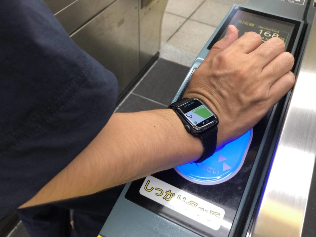 - 改札機に近づいたら、Apple Watchをかざす。