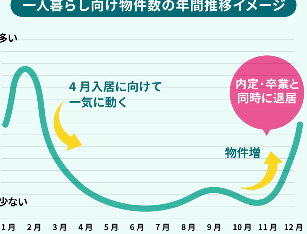 - 夏: 転勤や新生活に最適な時期。大学生の需要が高まります。