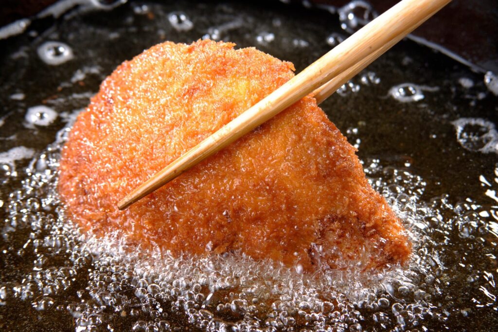- 食材を揚げる: 切った食材に衣をつけ、油に入れて揚げます。黄金色になるまで揚げ続けます。