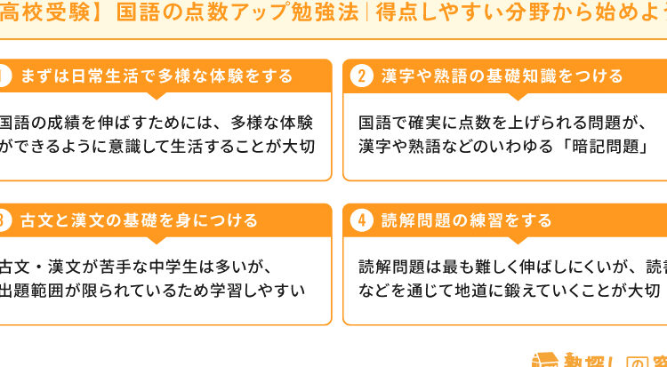 国語の勉強法には基本的な手法が存在します。効果的な方法を取り入れ、高校受験に向けた実力をつけることが重要です。以下に、いくつかの方法を具体的に示します。