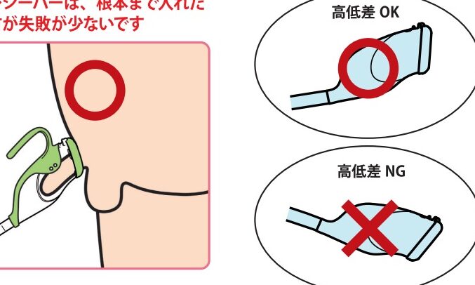 - 口を体の構造に合わせる。 男性用の場合はペニスの先端に、女性用の場合は女性器に合わせます。