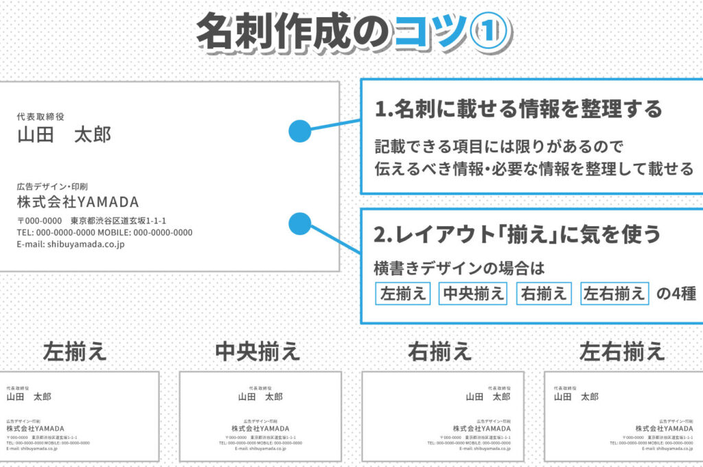 - ブランドカラーを使う。名刺全体で一貫性を持たせ、印象深いデザインを作ります。
