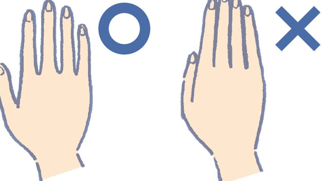 - 腕を前方に伸ばす – 片方の腕を前に伸ばし、手のひらを下に向けます。