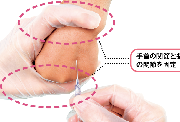 - 止血する。 採取後は、指を軽く圧迫して止血します。