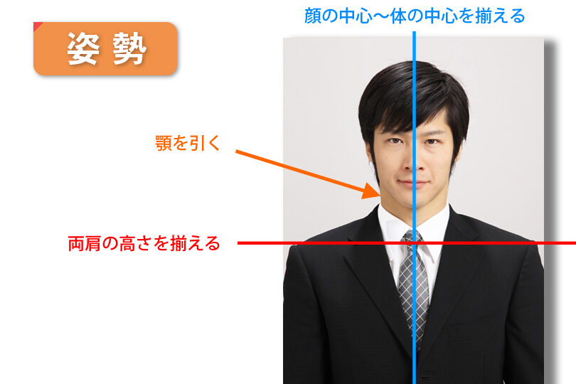 - 顔を少し傾ける。これで、表情が柔らかく見える。