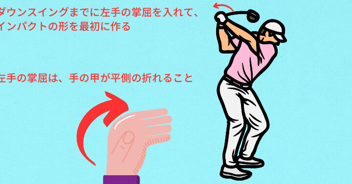 - 手首を使う。 スイングの始動とともに、手首を少し下に落とします。