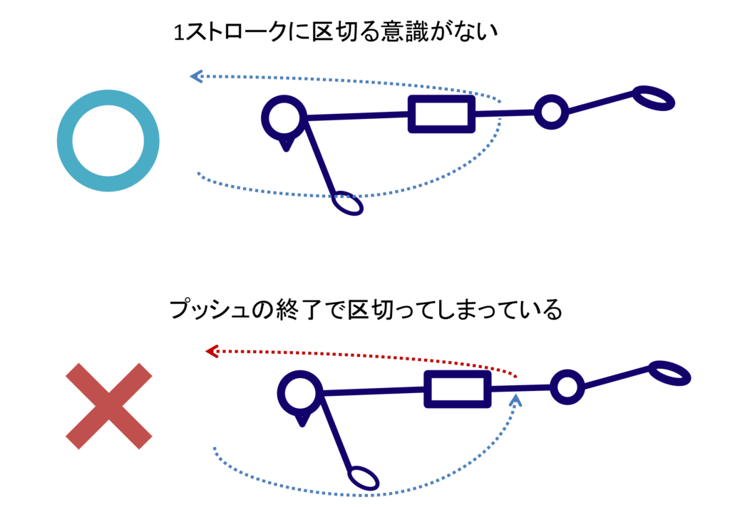 - 引いた後、手を外側に動かして上げる。再び水面に戻す際の動作をスムーズにします。