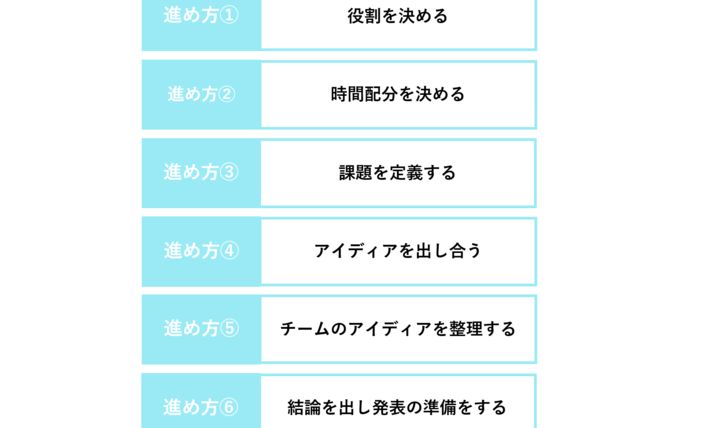 - 共通の目標を明確にする。 ディスカッションの目的を全員で確認します。