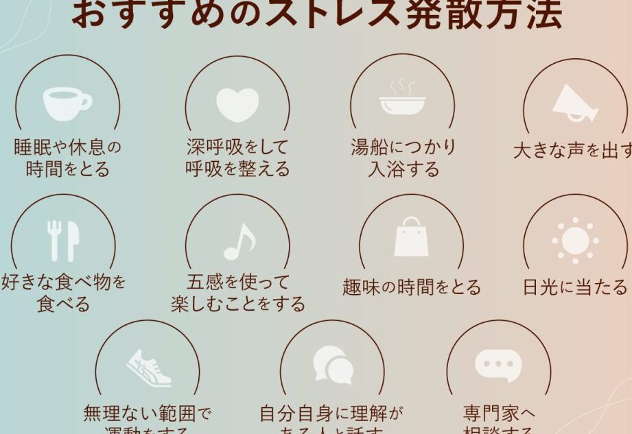 ストレスを溜めないためには日々の生活の中で意識して対策を講じることが大切です。軽い運動やリラクゼーション、十分な睡眠を心がけることで心身の健康を保つことができます。
