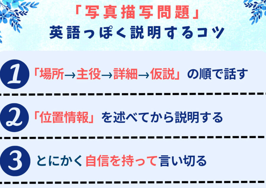 写真描写を効果的に行うための文法の基本を以下に示します。これらのステップを踏むことで、表現力が向上します。