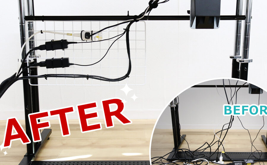 このように、ケーブルタイを使うことで、見た目がスッキリし、配線が明確になります。配線が絡むことを防ぎ、スペースの有効活用にもつながります。